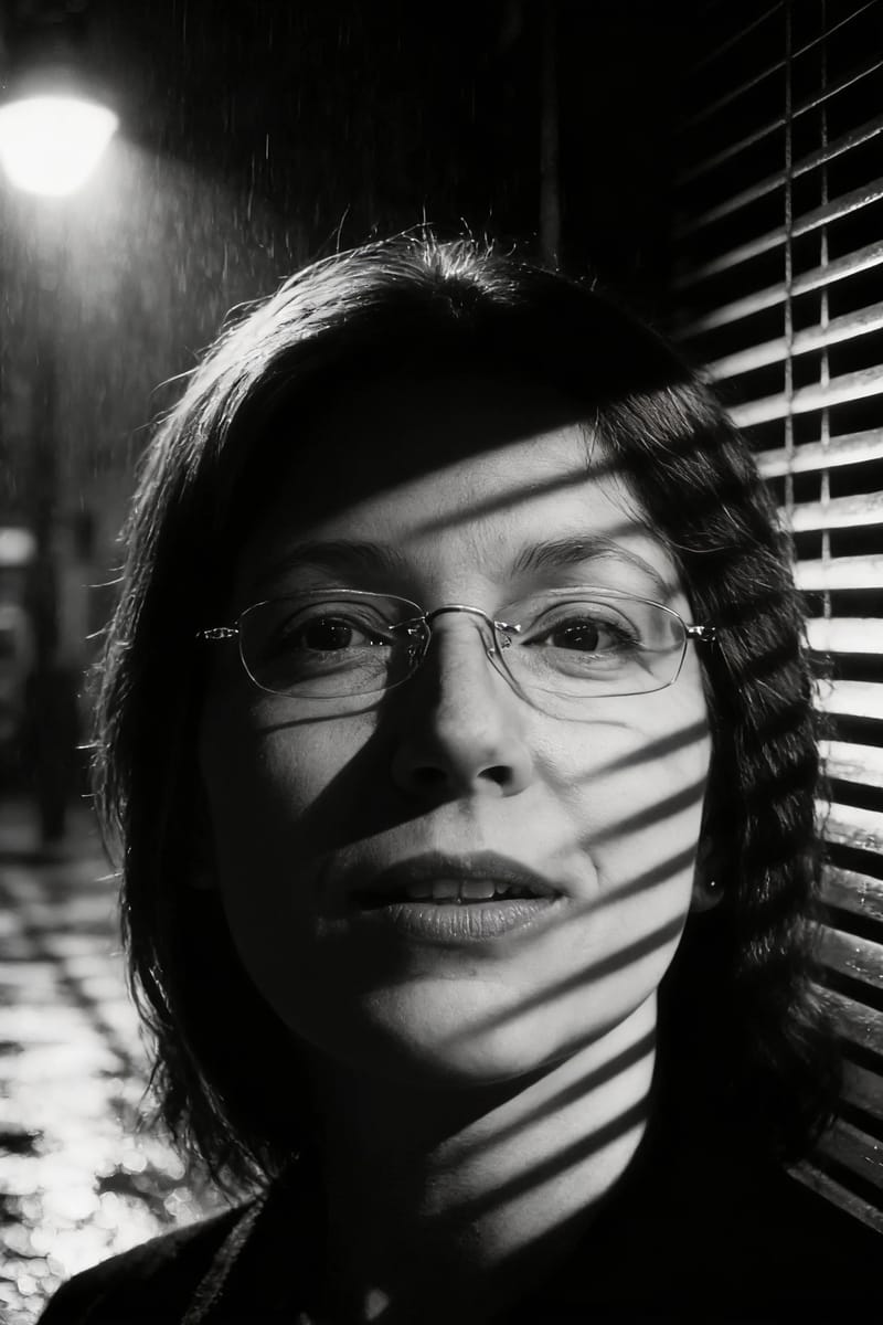 The 'Streetlight Detective' style employs the key tool of this genre: high-contrast, "low-key" lighting, or chiaroscuro. In this style, darkness is not merely an absence of light; it is a tangible, active, and often oppressive presence that consumes the frame. Light is used sparingly, in harsh, isolating pools—a single desk lamp, a crack of light from a door, or a lone streetlight—to sculpt the scene. The iconic effect of shadows cast from Venetian blinds is a central motif, a visual metaphor that stripes the protagonist in a "cage" of light and dark, visually trapping them in their fatalistic, morally complex world. This technique is what creates the style's signature mood of grit, mystery, and cinematic tension.