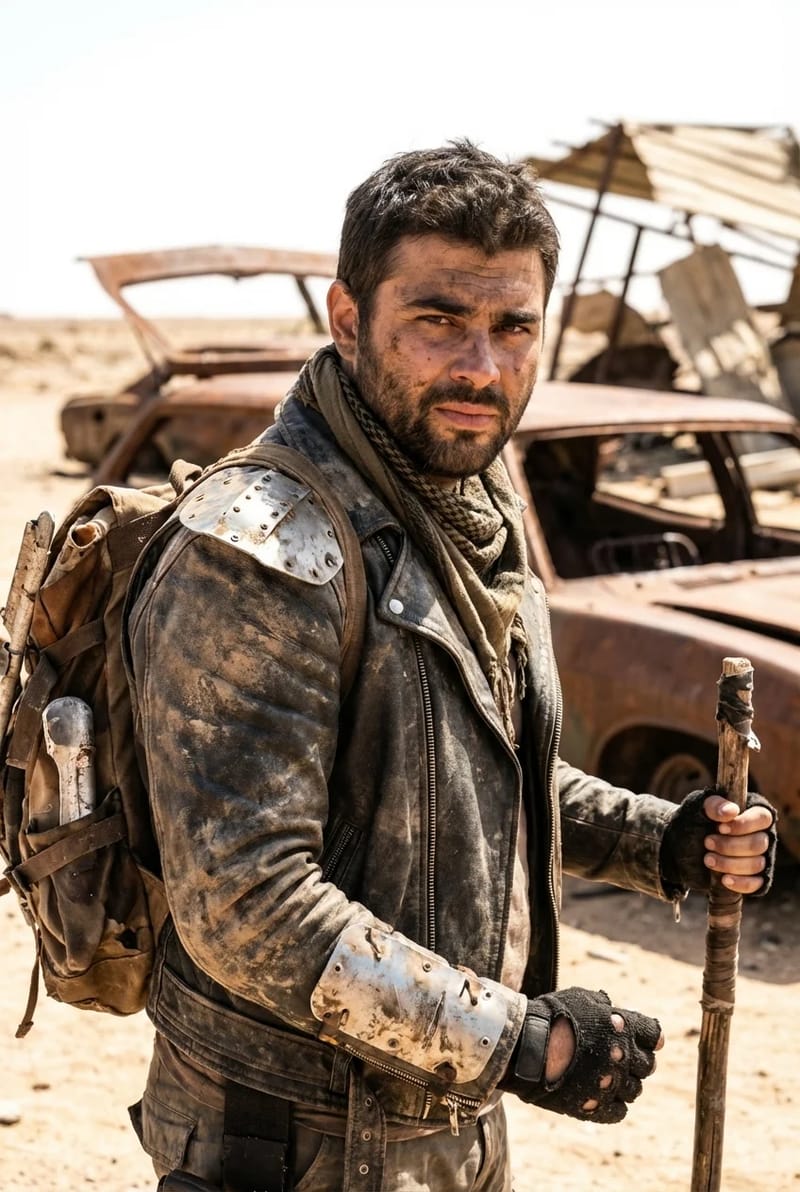 The 'Dust & Chrome' aesthetic is born from the powerful juxtaposition in its name. The "Dust" represents this new, primal world: the gritty, sun-scorched desert, the crumbling ruins of cities, and the rusted-out metal husks of forgotten machines. The "Chrome" represents the ghost of the high-tech, pre-cataclysm past. It is the scavenged, misunderstood, and often broken technology that survivors wear as makeshift armour, tribal trophies, or jury-rigged weapons. The style is therefore a "scavenger aesthetic," where nothing is new, and every object is a repurposed relic, creating a portrait of a hardened survivor defined by both the world's end and the fading chrome of the world that was.