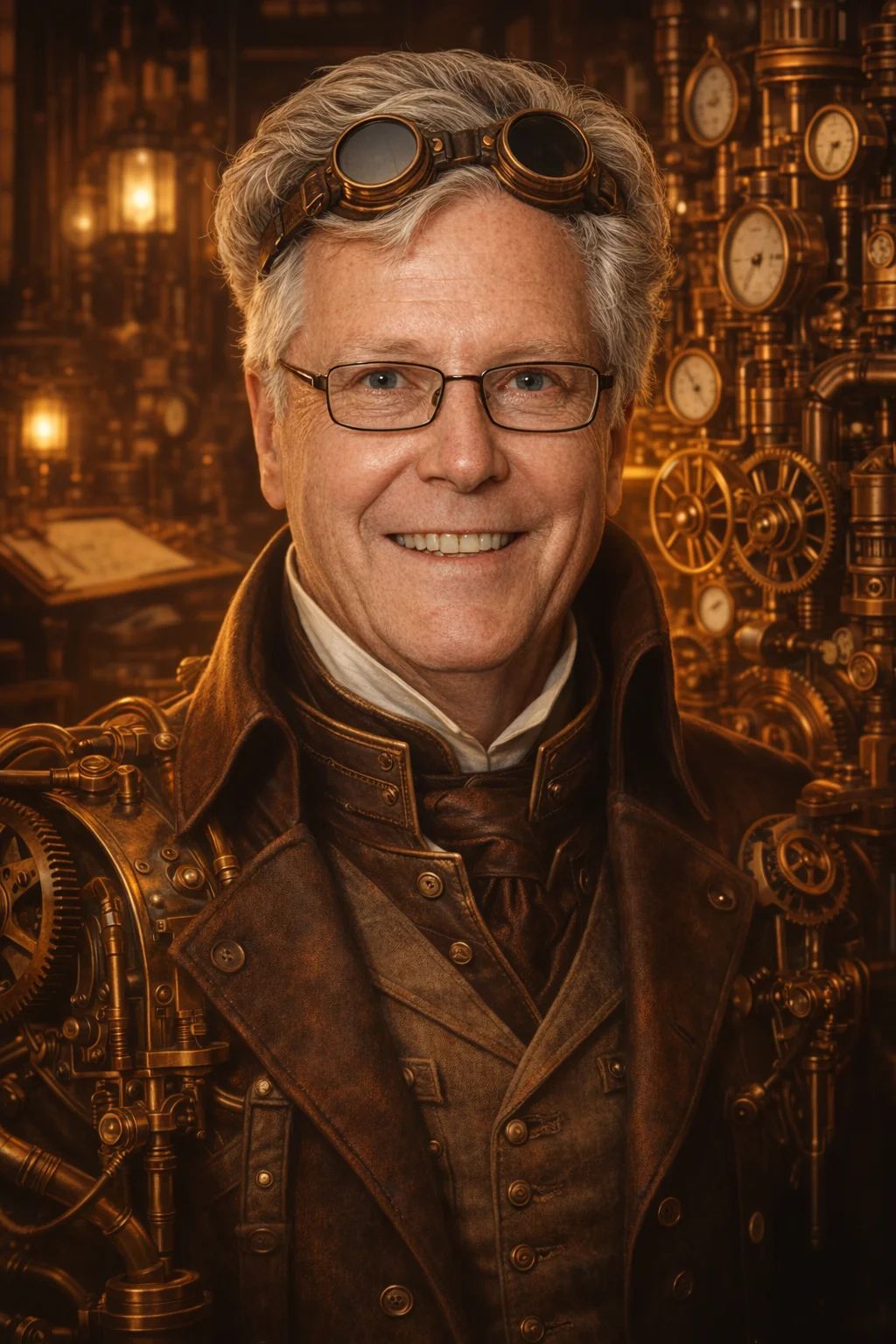 This style is inspired by Steampunk, a genre of "retro-futurism" that builds its world from a single, powerful "what if?" It imagines a 19th-century Victorian society that achieved a high-tech future, but one powered by steam, clockwork, and gears—not by electricity, silicon chips, and digital code. It is a mythos that celebrates the analog machine, the industrial revolution, and the spirit of the gentleman (or gentlewoman) inventor.
