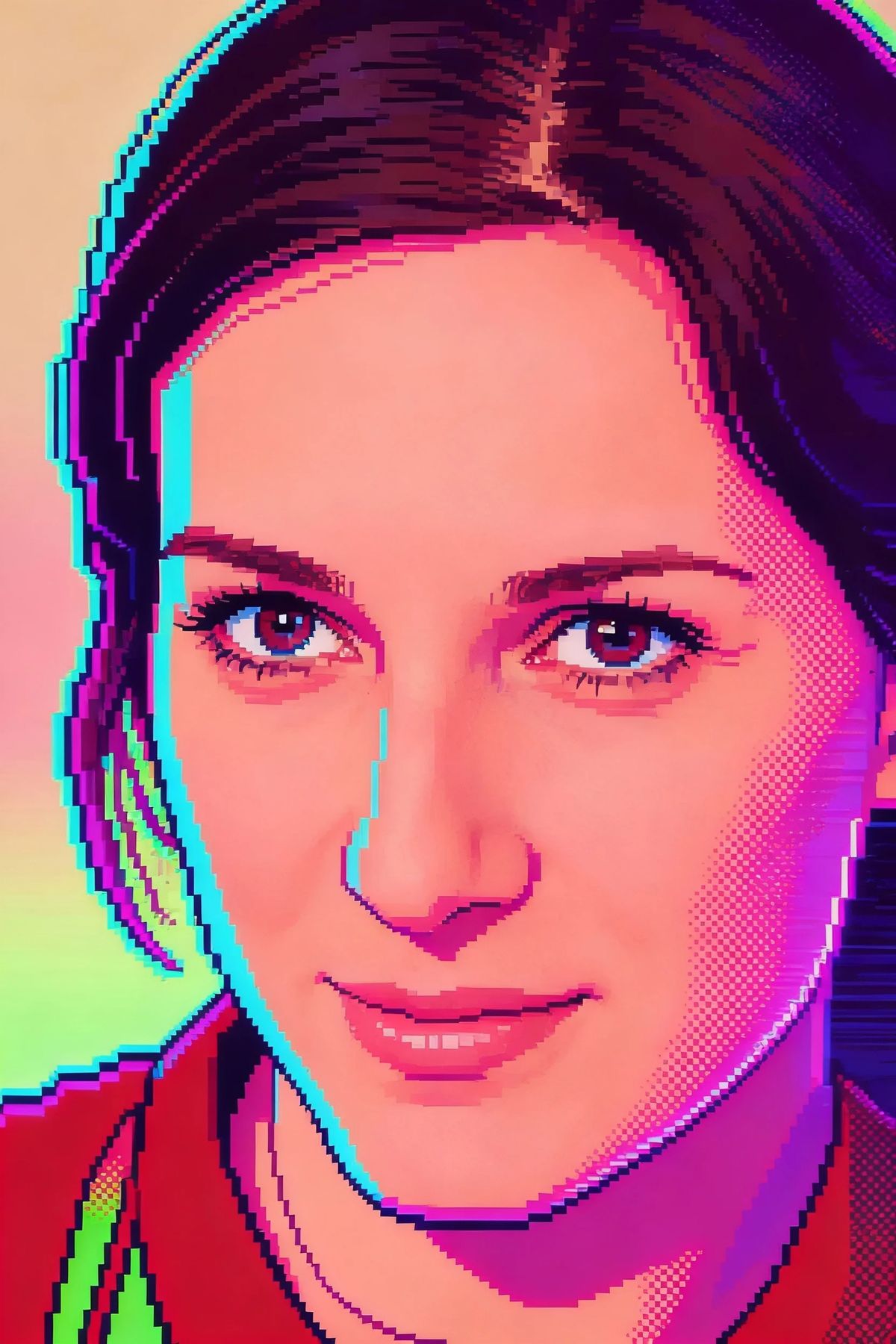 High-energy 80s arcade sprite look—bold neon palette, heavy glow, crisp pixel edges, and stylized dithering.