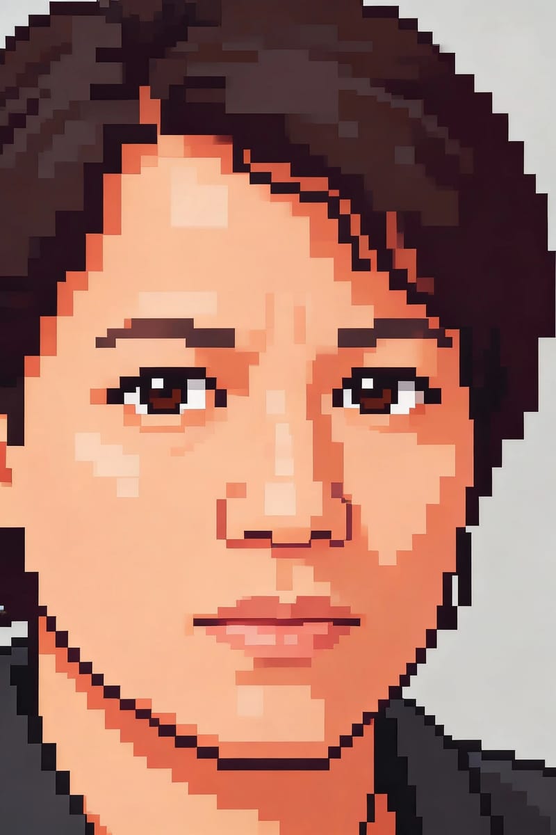 The genius of this art form was creativity through constraint. Artists had to become masters of suggestion, creating iconic, expressive characters using only a tiny, rigid grid and a strictly limited colour palette (e.g., the 8-bit NES could only display 25 colours on screen at once from a total palette of 54). Every single pixel was placed with deliberate, surgical precision. Shading, curves, and expressions were not "rendered"; they were implied through clever colour placement and hand-drawn anti-aliasing. This style celebrates that mastery, deconstructing your photo into its most essential, "bit-mapped" components to build a bold, clear, and timeless sprite.