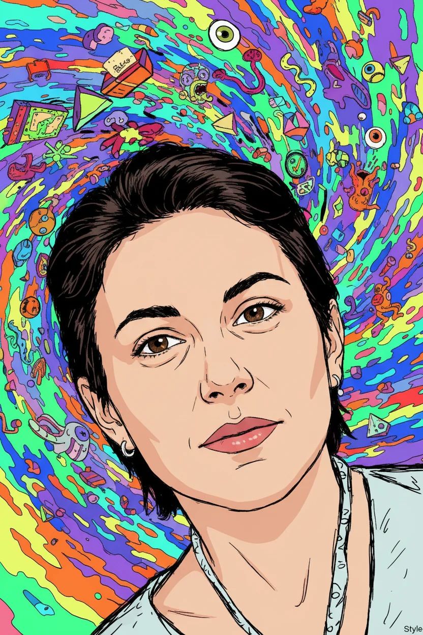 This style is drawn from a prominent school of adult animation that blends high-concept, interdimensional science fiction with a deliberately unrefined, almost "doodled" aesthetic. The core philosophy is one of cosmic chaos; the art style itself feels improvised, energetic, and slightly unhinged, perfectly mirroring the bizarre, unpredictable, and often grotesque universe it portrays. It intentionally avoids the polished, heroic look of traditional sci-fi, opting instead for a visual language that feels raw, irreverent, and immediate.